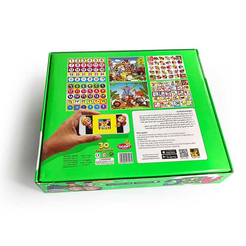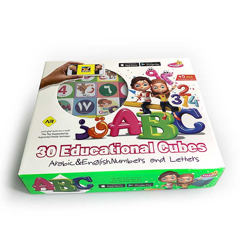 علبة المكعبات التعليمية حروف وارقام 30 قطعة كبيرة بتقنية الواقع المعزز