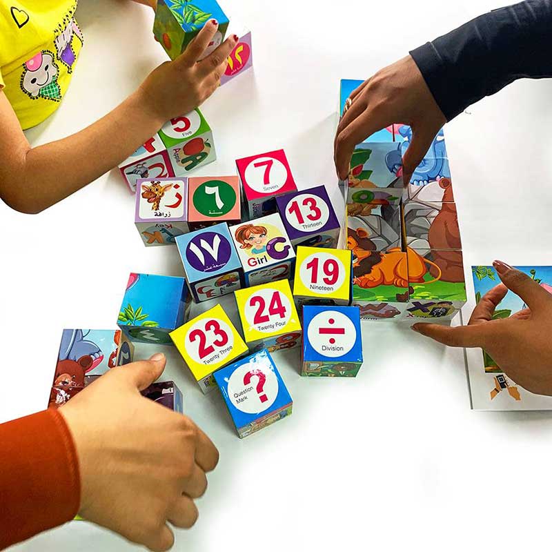 🎲 6 أوجه مختلفة لكل مكعب: لتعلّم الحروف والأرقام والأشكال بطريقة متنوعة.