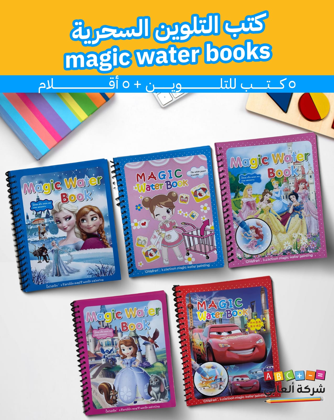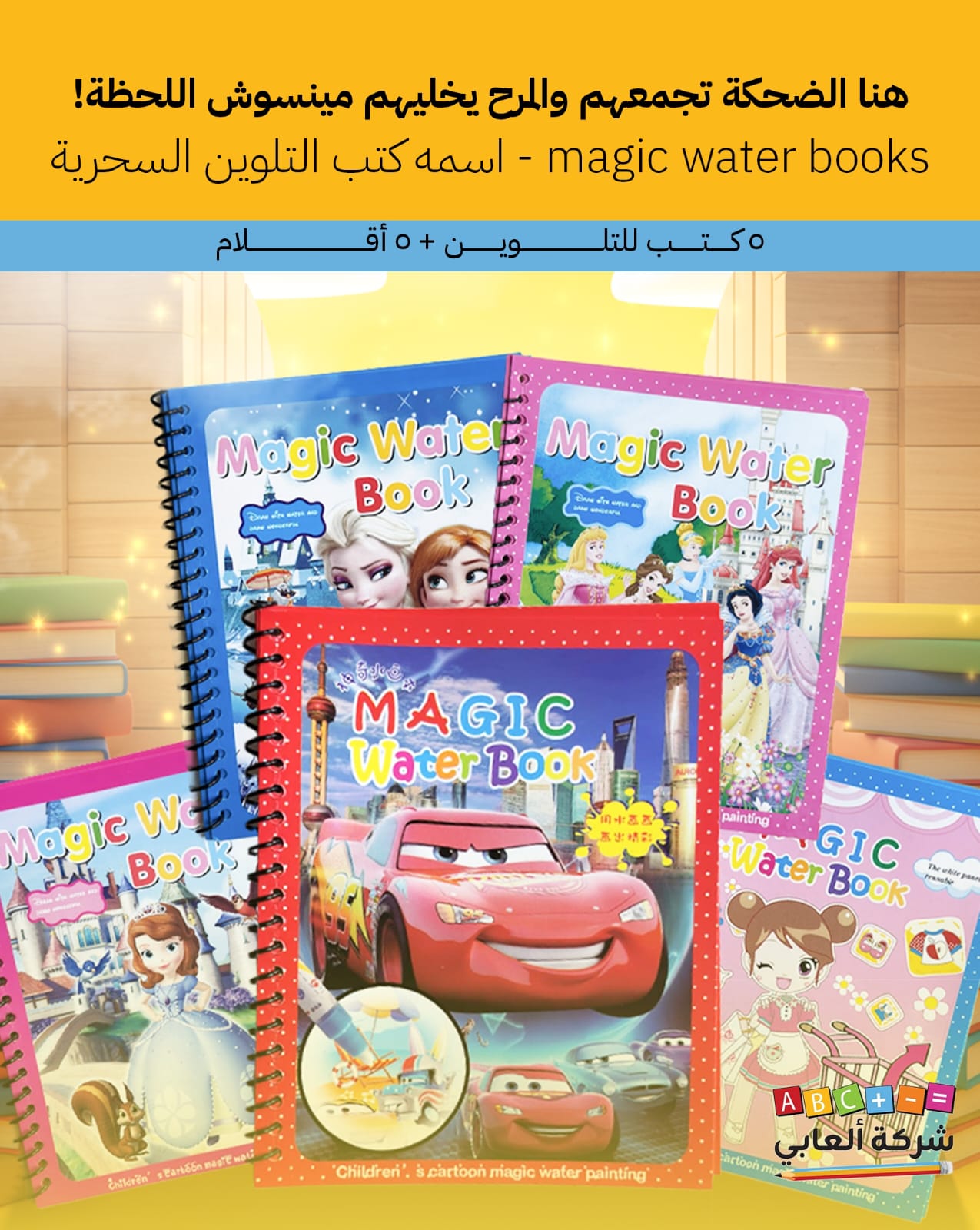 5 كتب + 5 أقلام مياه هدية… كفاية تخلي الطفل يفرح من أول ما يفتحها.