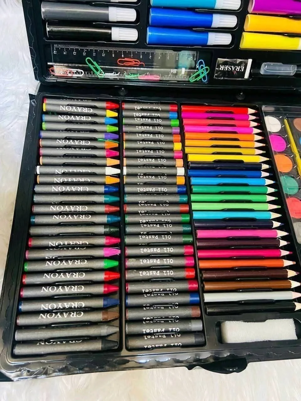 🎨 شنطة ألوان 160 قطعة كل أدوات الرسم والتلوين… في شنطة واحدة
