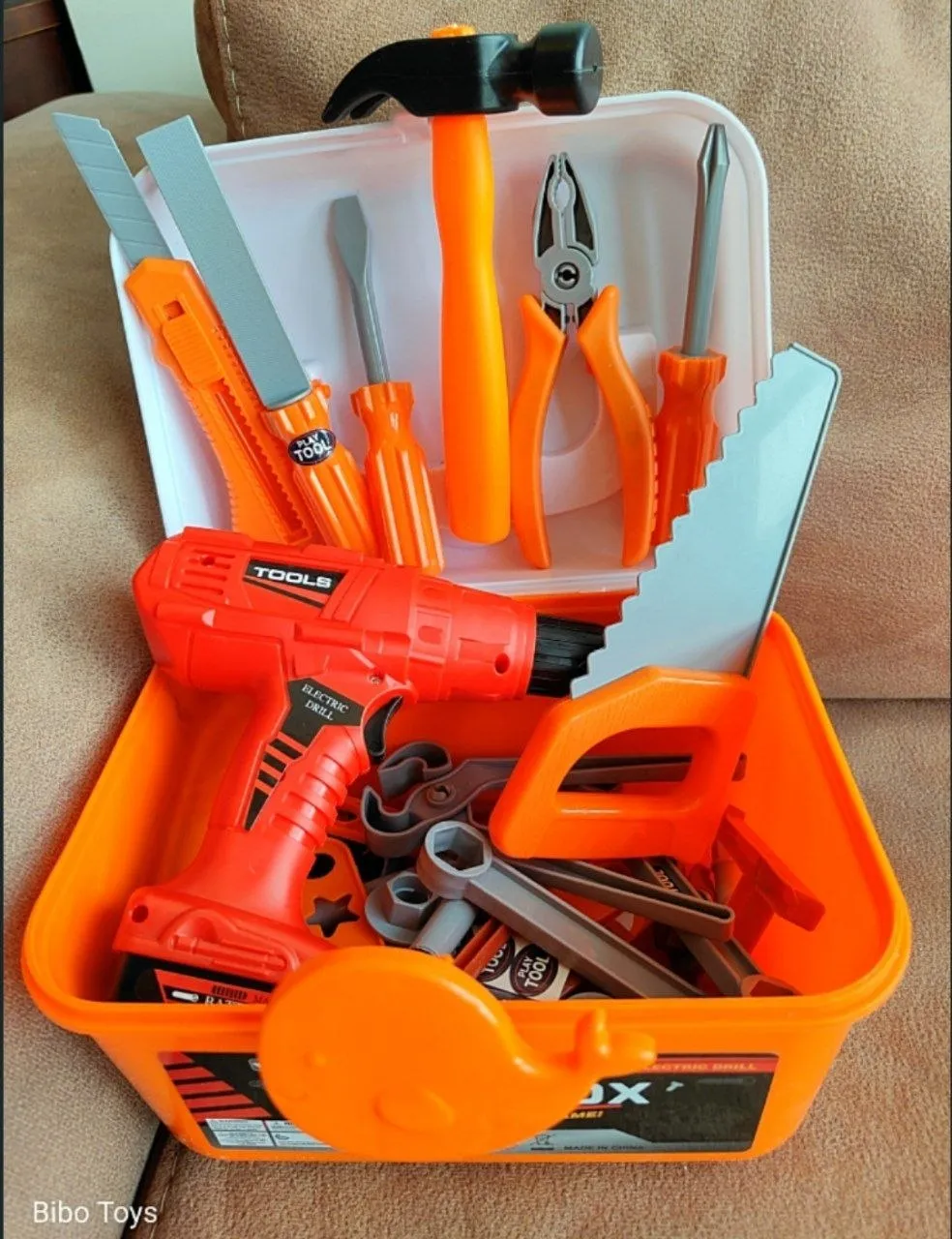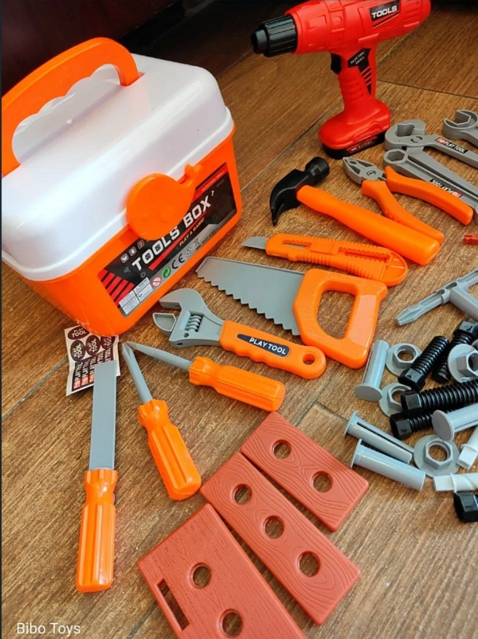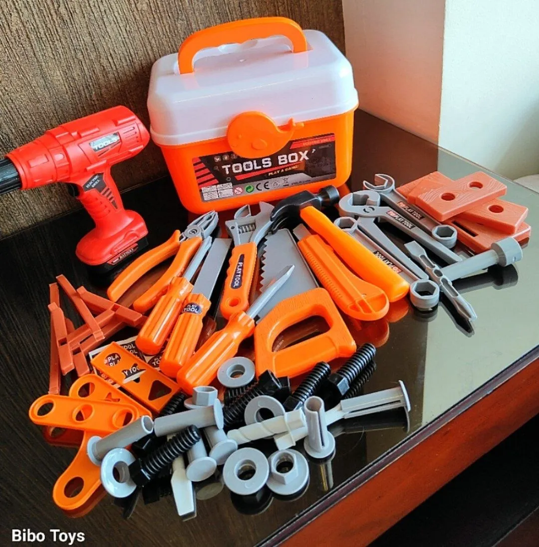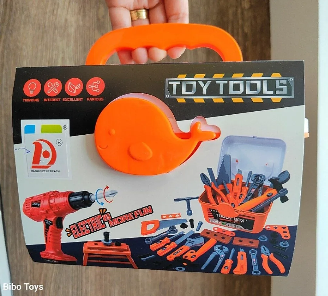 بوكس كامل فيه شنيور وأدوات كثيرة وقطع يربطها ويفكها،